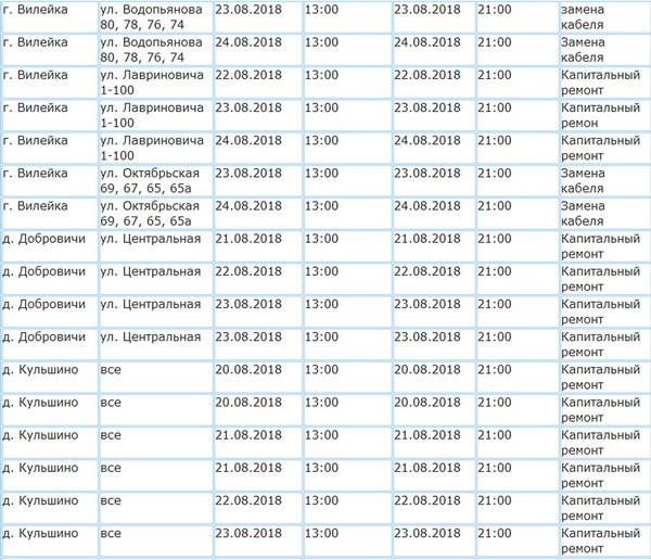 В Вилейке и районе в течение недели будут отключать свет (график)