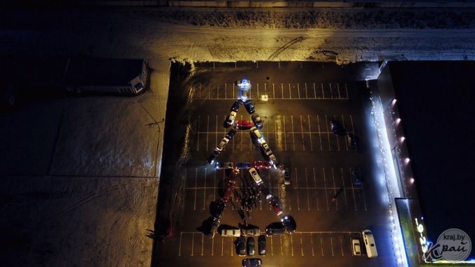 «Управились за полчаса». Автолюбители из Вилейки и Сморгони создали гигантскую елку из машин