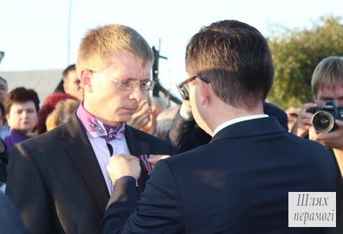 Хотите узнать больше? Посол Республики Польша в Беларуси Конрад Павлик награждает медалью «Pro Patria» вилейчанина Дениса Канецкого. Фото с сайта peramoga.by Посол