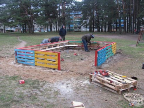 Жильцы дома №53 по улице Толстого в Вилейке построили во дворе песочницу (фото)