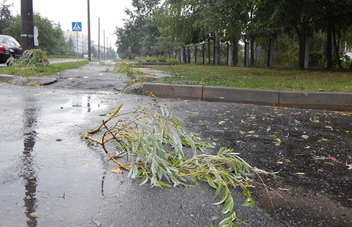 Гроза, которая накрыла город, на время парализовала движение на многих дорогах города. Такого разгула стихии Бобруйск не видел давно. Разбушевавшаяся природа ломала ветки и с корнем выворачивала деревья. Сообщает bobrlife.