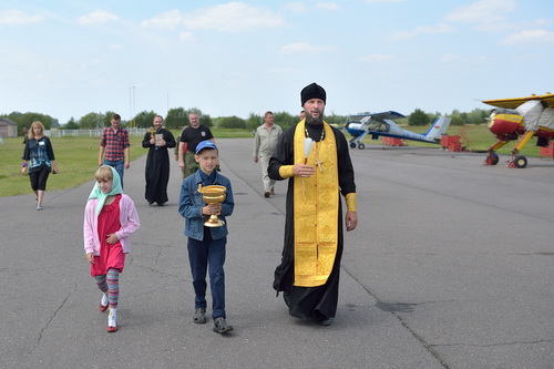 Возглавил это торжественное мероприятие настоятель Свято-Духовского храма, руководитель отдела по взаимоотношениям с вооруженными силами Бобруйской епархии протоиерей Александр Лавицкий. Участники крестного лёта облетели город, молясь о мире и благосостоянии его жителей.