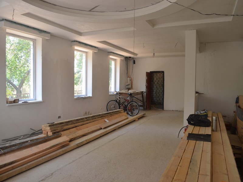«Здесь разместится актовый зал, домовой храм святых Петра и Февронии — покровителей семьи, творческий класс, тренажёрный зал, игровой. Но, как видите, готовность тут пока где-то 50 процентов».