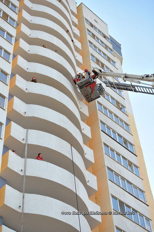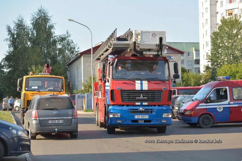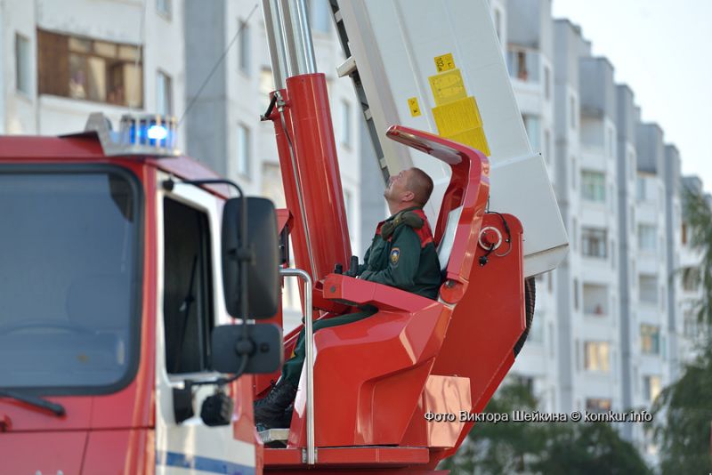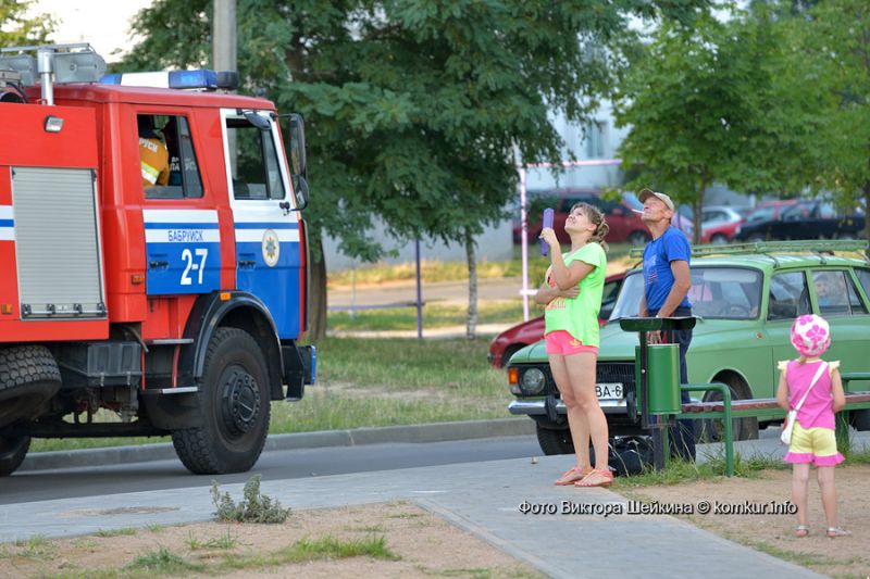 Представьте себе: оглушительные звуки сирен, восемь ярко-красных машин МЧС с огромной лестницей и сосредоточенные, стремительные спасатели с пожарными рукавами наперевес, забегающие в ваш дом. Что делать? Убегать! Так подумала значительная часть жильцов единственной пока 18-тиэтажной высотки Бобруйска. И рванула на улицы! С детьми и ценными вещами подмышками они вылетали из подъездов и тут же с удивлением наталкивались на журналистов.