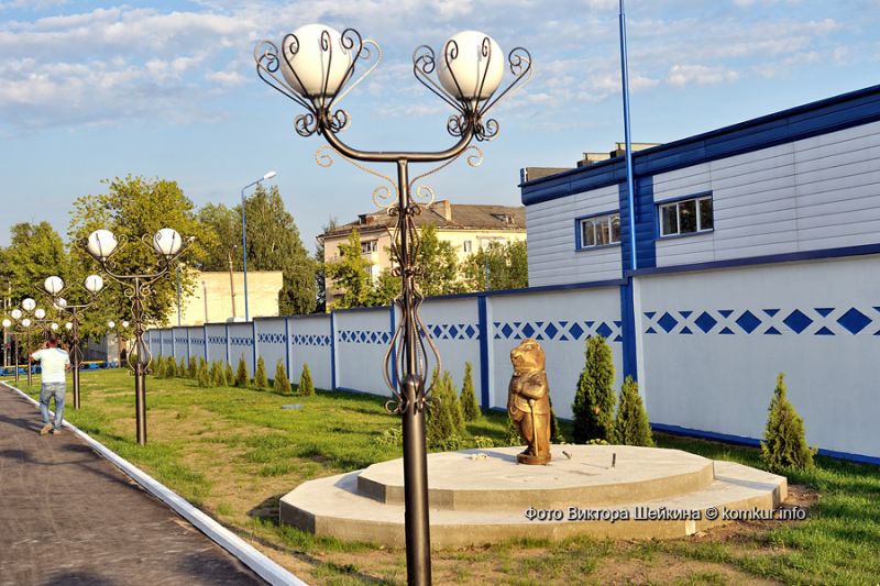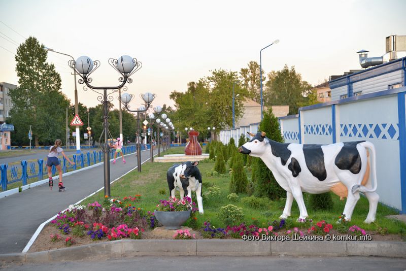 По словам Геннадия Михайловича, композицию с уже установленным бобром в ближайшие дни дополнят два стилизованных кувшина — с их помощью и применением стекловолокна будет создаваться иллюзия льющегося молока. К стенам молокозавода «пришли попастись» корова с теленком. Обновилась входная группа: здесь появилась доска почета, флаги с логотипом холдинга «Могилевская молочная компания «Бабушкина крынка». Похорошела после ремонта производственная проходная. А соседствующая с заводом остановка общественного транспорта и вовсе радикально изменила не только свой имидж, но и название. Теперь на остановочном пункте красуется табличка «Бабушкина крынка». Вокруг уложена тротуарная плитка. Заменено асфальтовое покрытие на стоянке автотранспорта предприятия. Прилегающую территорию украсили новые посадки из хвойных деревьев. А по вечерам возле завода теперь зажигаются шикарные фонари в ретростиле!
