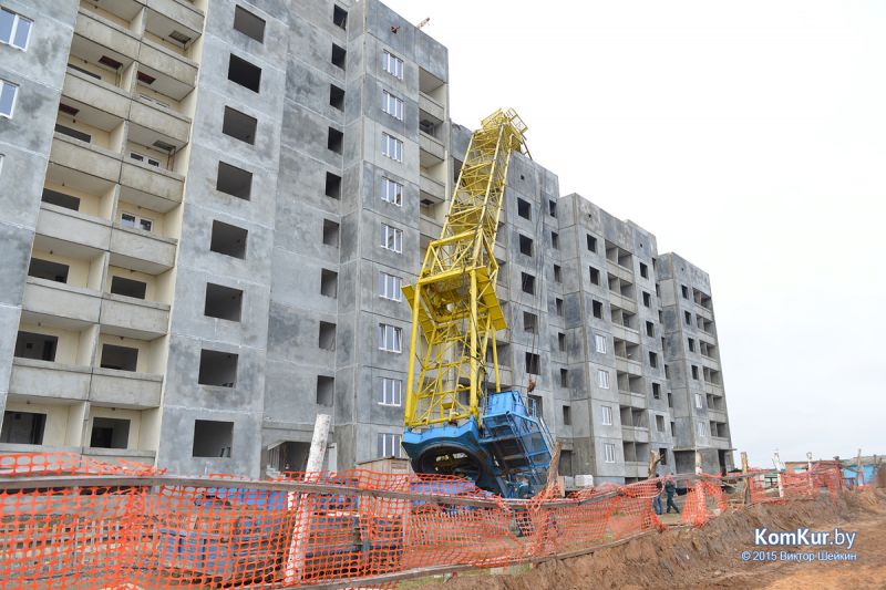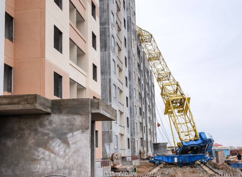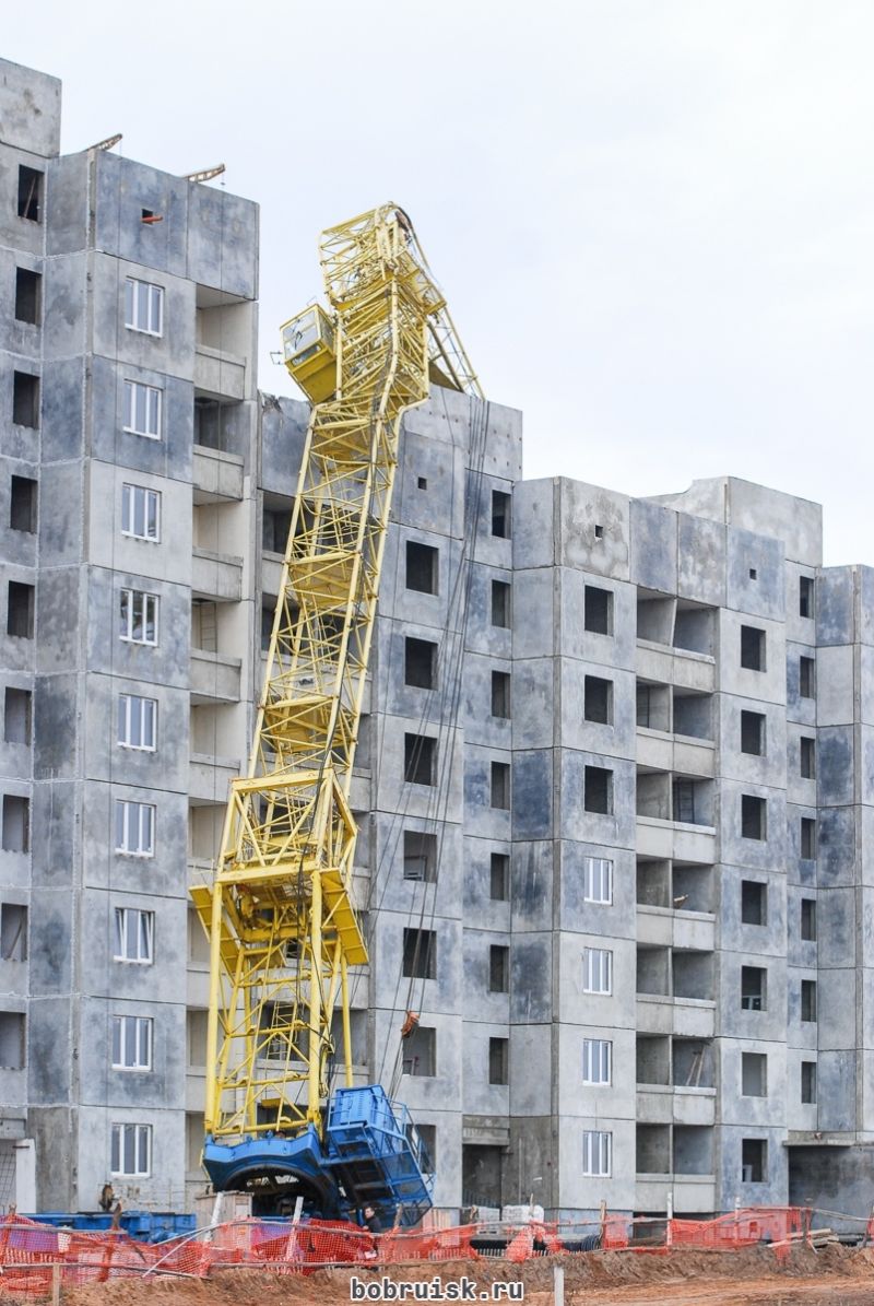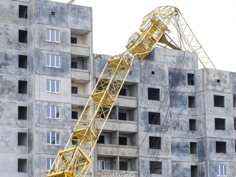 В Бобруйске на строящийся дом упал кран