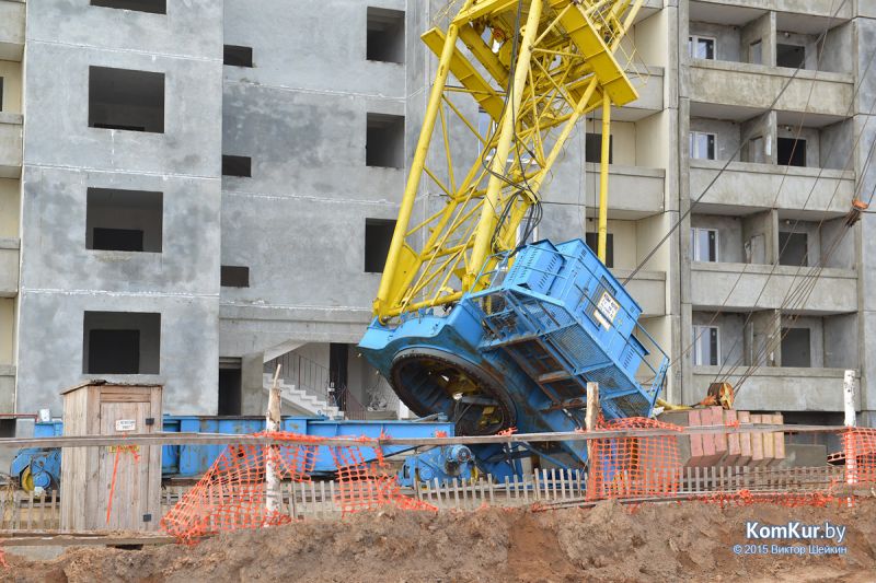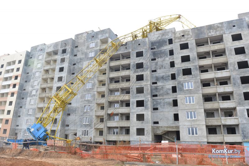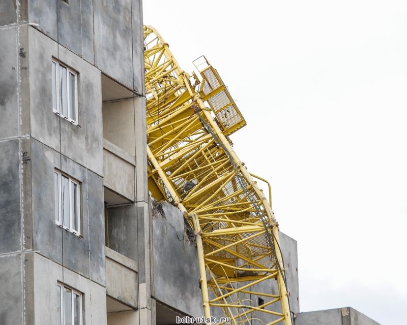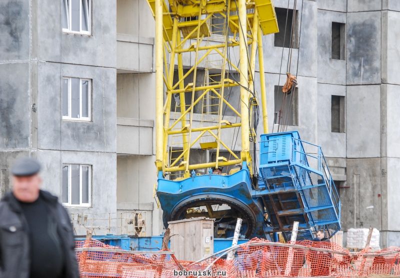 06.11.2015, Бобруйск. Строительный кран упал на жилой дом в строящемся микрорайоне на бульваре Приберезинском.