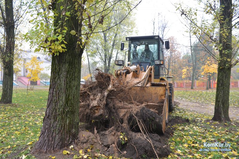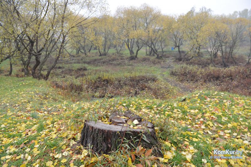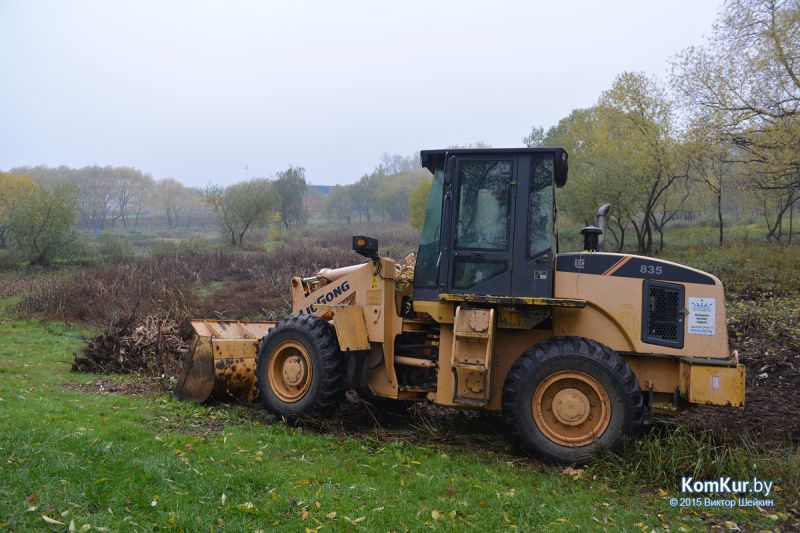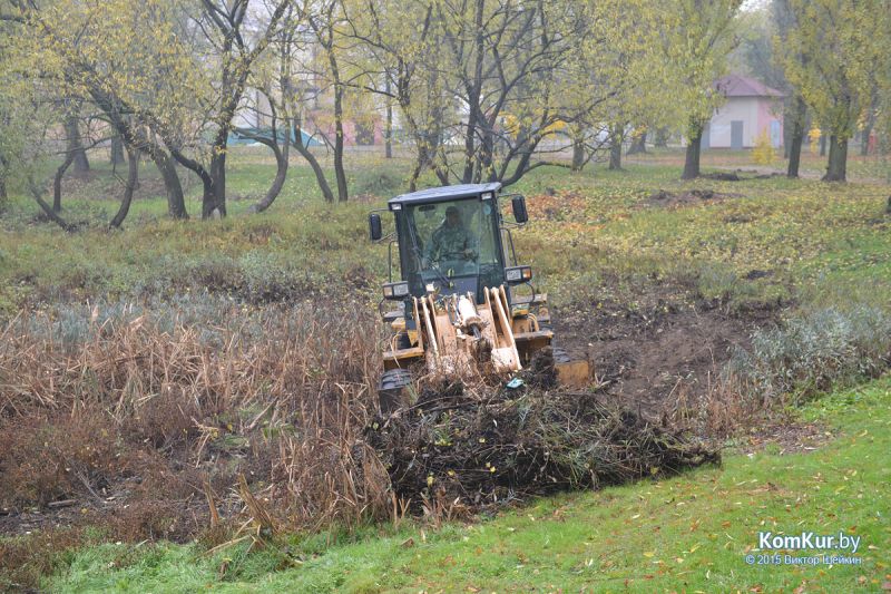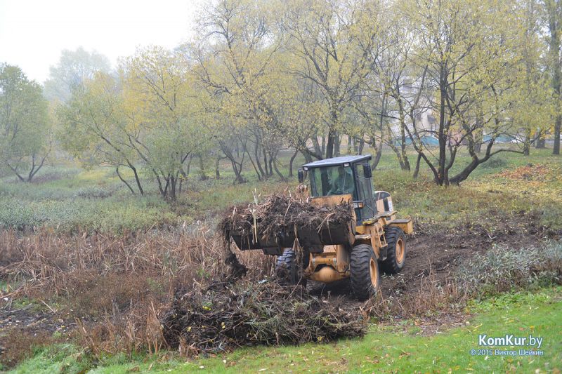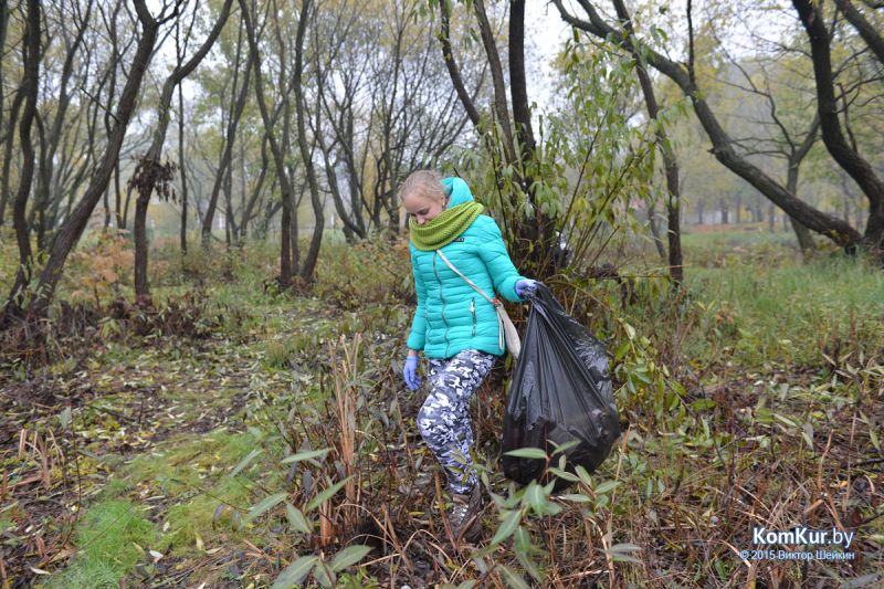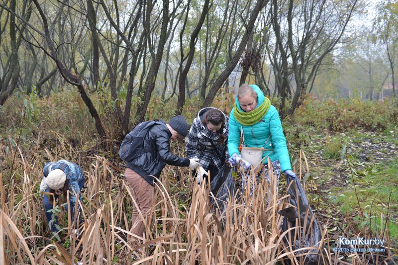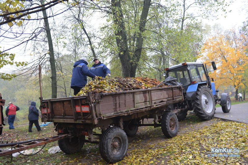 Подобная акция работников парка совместно с активистами БРСМ уже проводилась в сентябре. На этот раз инициативу проявила союзная молодежь из первичной организации филиала БНТУ Бобруйского государственного автотранспортного колледжа. В начале десятого утра в парке, за кинотеатром «Мир», мы с фотокорреспондентом встретили около тридцати молодых людей с вилами, работников парка, а также Бобруйской городской и районной инспекции природных ресурсов и охраны окружающей среды. Присутствовавший на месте директор парка А. П. Виноградов представил журналистам план работ: