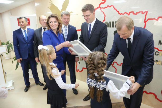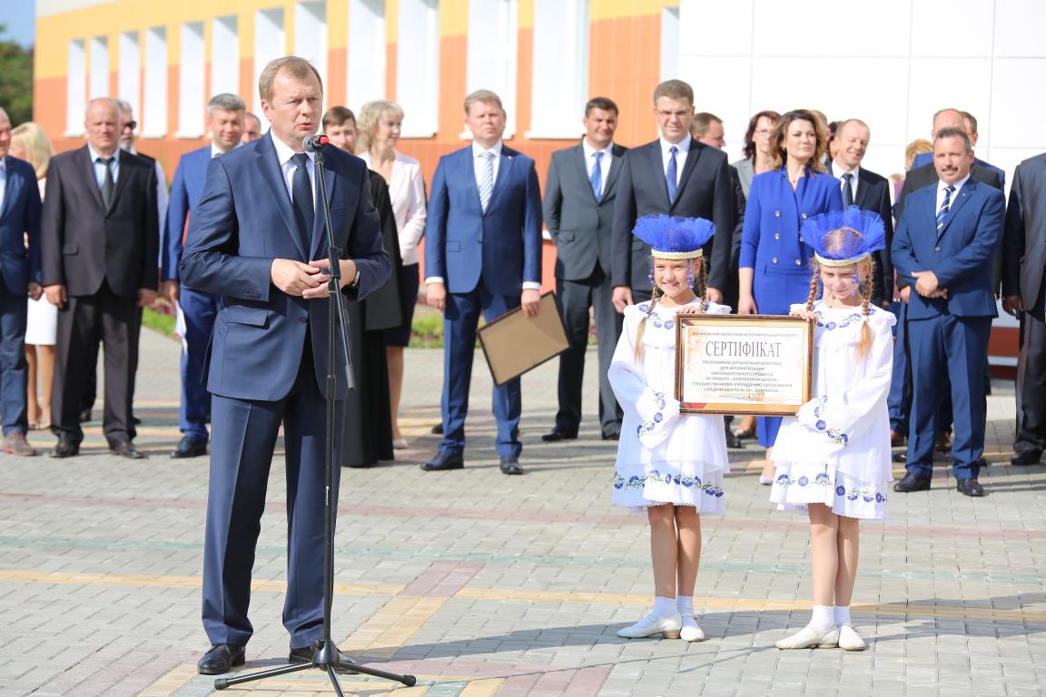 Обратил внимание Владимир Доманевский и на то, что в школе 7 первых классов, что говорит о значительном улучшении демографической ситуации. В подарок глава региона преподнес сертификат на приобретение программно-аппаратного комплекса для автоматизации образовательного процесса по проекту «Электронная школа».