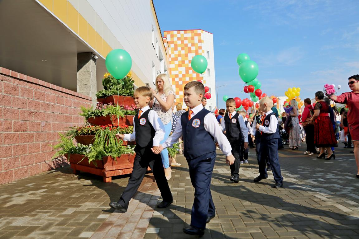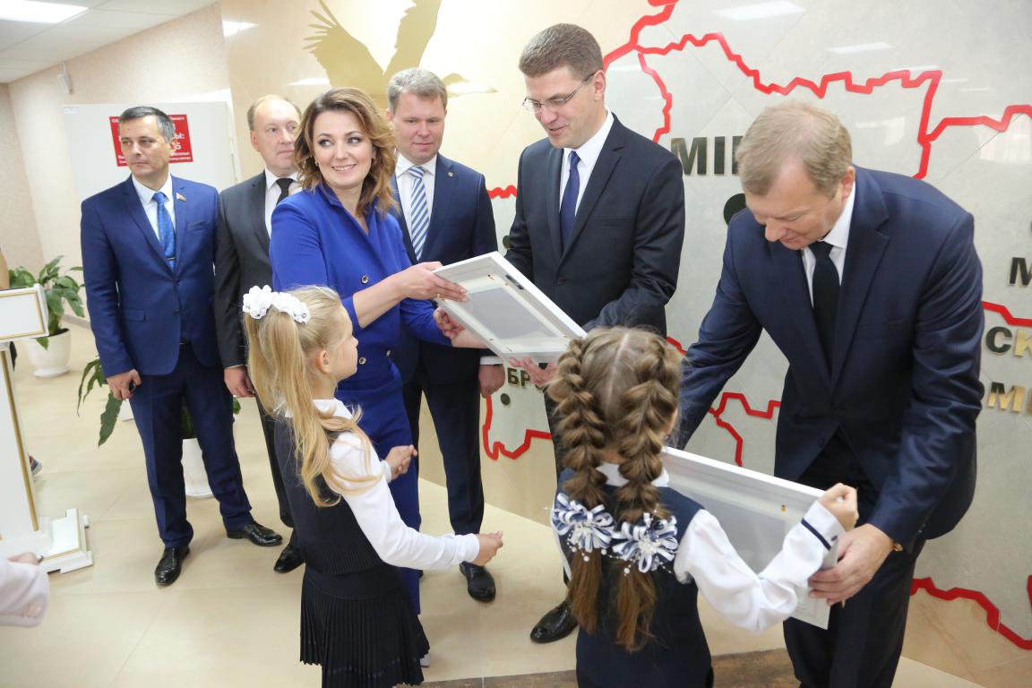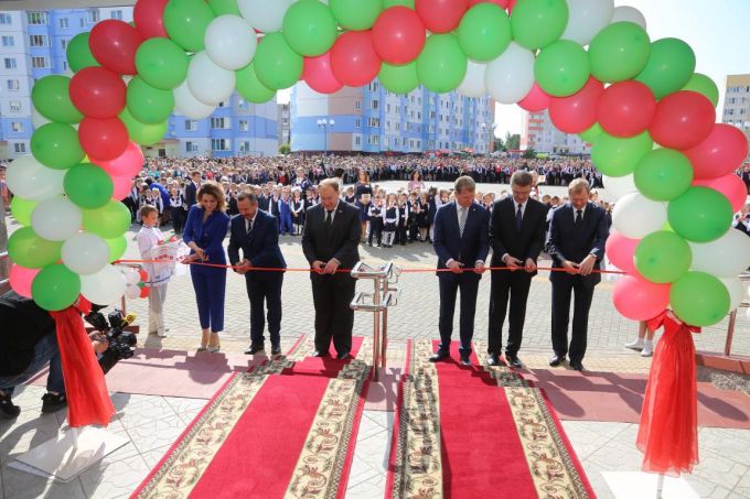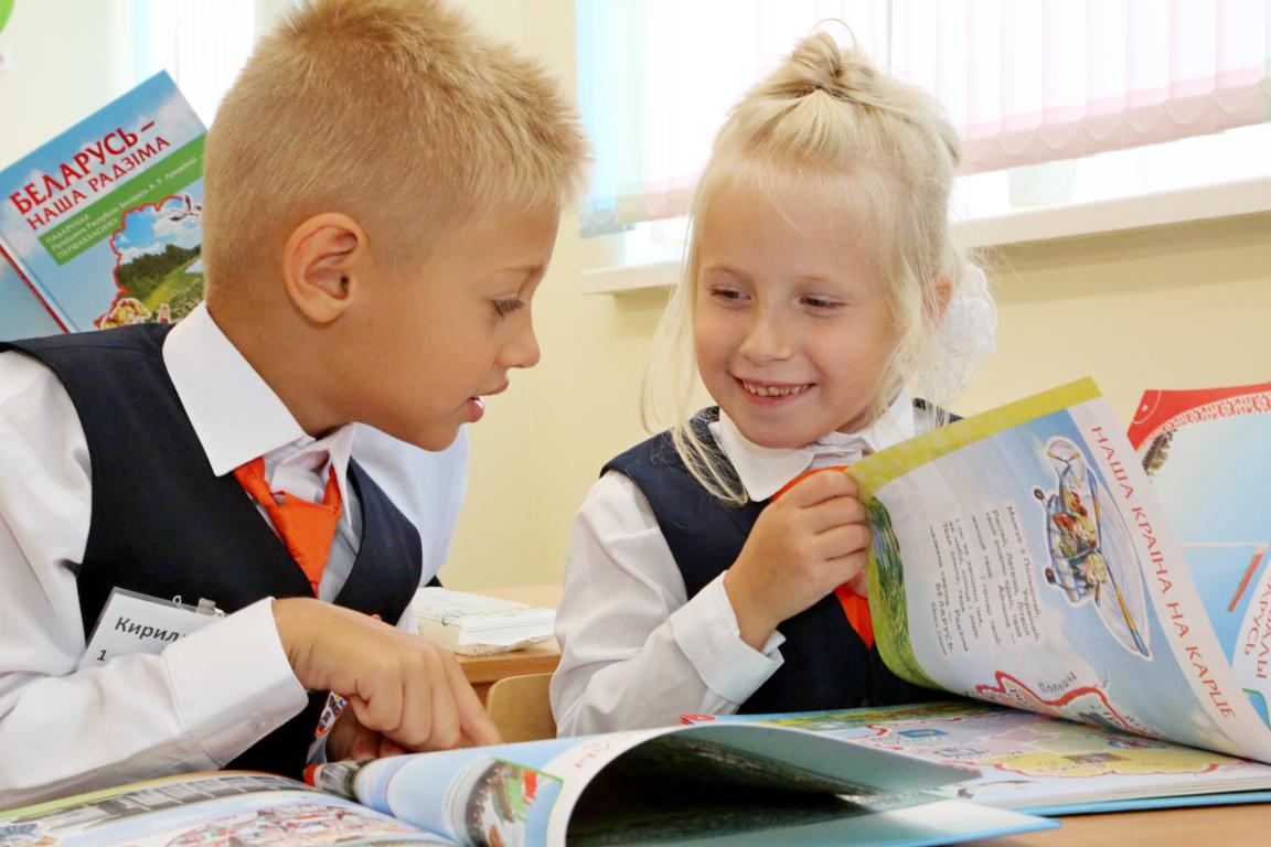 Первыми в стены школы вошли первоклассники и сели за новенькие парты в светлых просторных классах. Почетные гости вручили им подарок от Президента Республики Беларусь — книгу «Беларусь — наша Радзіма», которая расскажет им о нашей стране, ее достижениях, устремленности в будущее.
