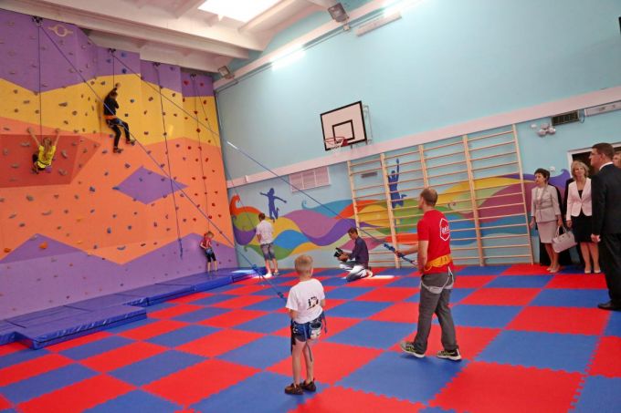 Школа имеет физкультурно-оздоровительный профиль: два спортзала, тренажерный, зал хореографии и гимнастический, две баскетбольные площадки, три - волейбольные, скалодром. В отдельно стоящем здании бассейн с 50-метровыми дорожками, который смогут посещать и жители микрозоны в свободное от учебных занятий время.