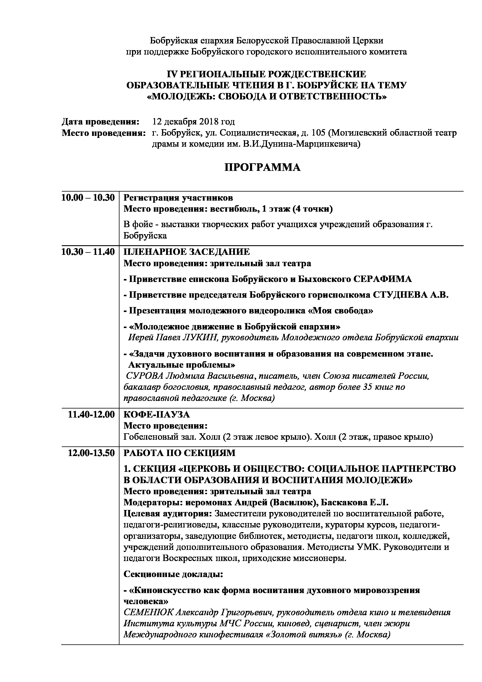 Мероприятие проводится в городе на Березине в четвертый раз и уже стало церковно-общественным форумом в сфере образования, культуры и духовно-нравственного просвещения, дискуссионной площадкой для обсуждения общих для церкви и общества вопросов.