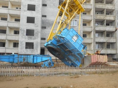 МЧС: на бульваре Приберезинском произошло опрокидывание башенного подъемного крана