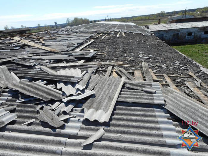 В Дрибинском районе стихия повредила 24 листа шифера кровли склада муки и 170 листов шифера кровли коровника на территории МТФ деревне Халипы.
