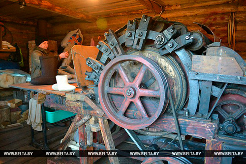 Экскурсию по деревне мы начали с посещения святая святых - шаповальской мастерской, большую часть которой занимает старинный огромный чесальный станок. Он в рабочем состоянии и используется до сих пор по назначению. Как рассказал Валентин Зюликов, сам он научился валянию с детства, помогая деду Моисею и отцу Владимиру. Оттачивал мастерство и учился столярному делу у известного тогда мастера Евдокима Огородникова. Деды и прадеды со стороны Владимира Моисеевича и его жены Нины Трофимовны также были шаповалами. Да и почти все жители деревни занимались этим ремеслом наряду с другими промыслами, которые могли дать хоть какой-то заработок. Но запреты на ремесло и сбыт валенок в советские времена довели до того, что шаповальство было почти забыто. Сейчас оно переживает второе рождение. В районе разработана концепция дальнейшего развития шаповальства, при районном историко-этнографическом музее действует детский коллектив «Катрушник», участники которого изучают мастерство изготовления валенок. Всего на данный момент на Дрибинщине работают около 30 мастеров.