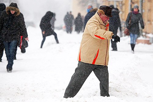 Естественно, никаких тротуаров нет, и встречные пешеходы, недовольно поглядывая на нашу машину, обречённо прыгают в сугробы высотой около 40 см.