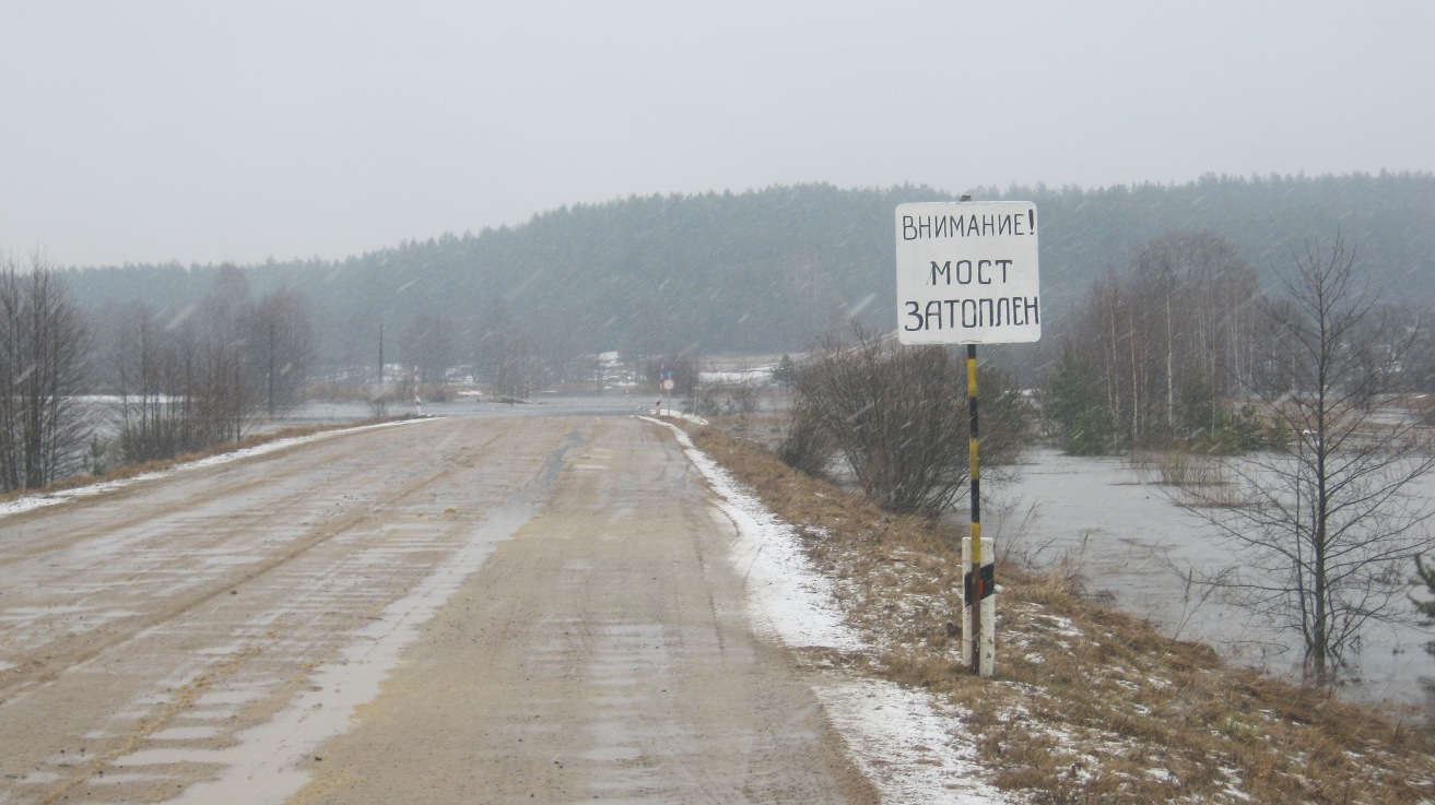 Уровень воды над дорогой поднялся на 65 сантиметров. Мост расположен в двух километрах от деревни Скварск. Проехать в нее, как и в деревни Вербовка, Пухнова и Дедня, сейчас можно только по объездной дороге через Дрибинский район.
