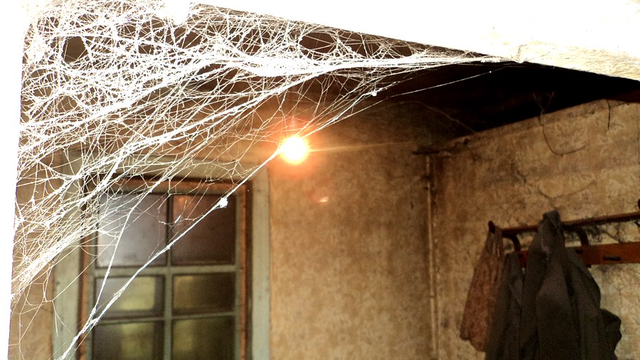 С потолка и стен полуметровыми гроздьями свисает паутина, на бывших когда-то светлыми обоях трудно разобрать рисунок, стиралось ли когда-либо постельное белье на горизонтальной поверхности, которая служит жильцу в качестве кровати, – неизвестно.