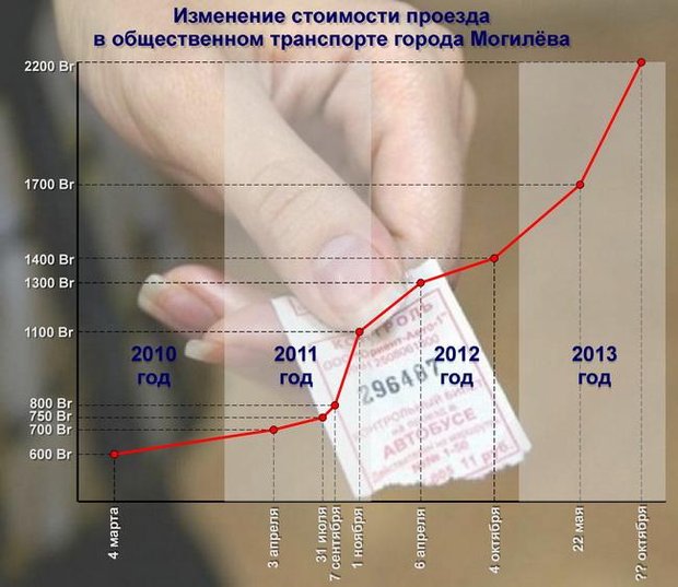 Это уже второе повышение цен на проезд в общественном транспорте в Могилевской области в 2013 году. Как сообщал horki.info, ранее проезд дорожал в мае.