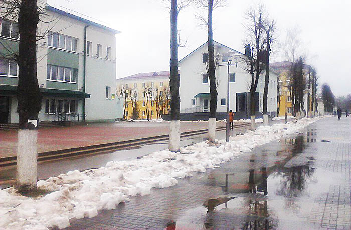 В Горках есть оригинальный способ уборки снега - сгребать его в сторону.