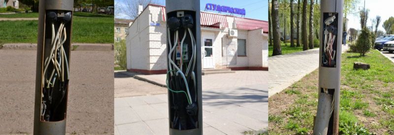 На 500-метровом участке тротуара от 22-го дома до 1-го общежития я насчитал три осветительных столба со снятыми крышками, из которых торчат провода и просматриваются токоведущие части. Думаю, не стоит рассказывать родителям мальчуганов о том, как они любят запускать свои тонкие пальчики в эти штучки.