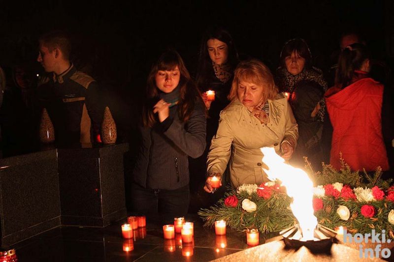 Возле мемориала "Скорбящая мать" в Горках прошла традиционная акция "Свеча памяти".