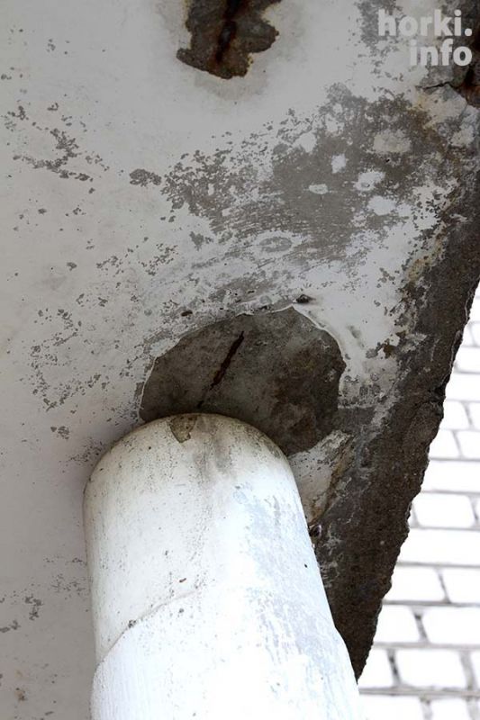 Возле одного подъезда труба-стойка дала трещину – палец просунуть можно, у другого – вообще отошла со своего места и болтается в воздухе. Мы боимся, что без должной опоры и под воздействием сырости эти плиты когда-нибудь рухнут нам на голову, – рассказывает Галина Павловна Каравская, присоединившаяся к беседе.