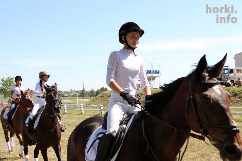 Показательные выступления на конкурном поле конно-спортивной школы