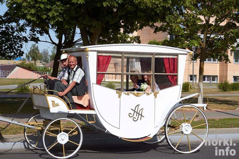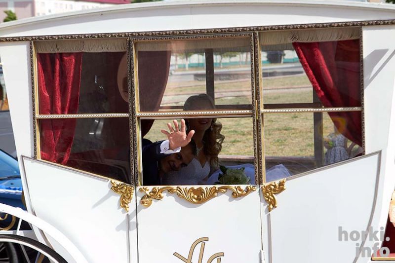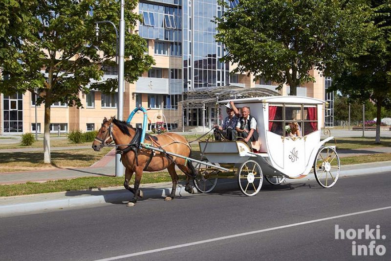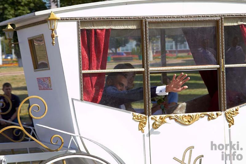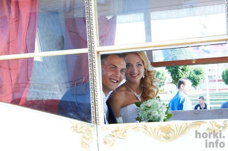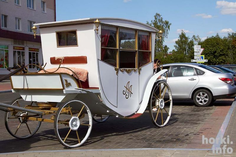Карету для пары, которая в субботу 22 августа расписывалась в Горках, привезли из российского Орла. Она остается в нашем городе, так что свадьба по-королевски может стать местной традицией.