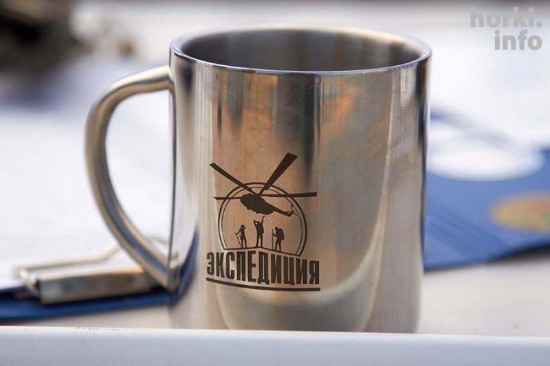 Владимиру Пискижеву подарили сувенир – кружку с логотипом Open Spinning Cup в Горках.