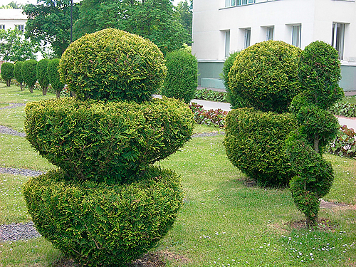 - При создании композиций, - делится опытом Анна Петровна, - стремимся располагать растения так, чтобы как можно полнее использовать их цветение с ранней весны до поздней осени. Нам интересны низкорослые, приземистые культуры декоративной формы, шары, колонны, пирамиды... И сами активно используем художественную стрижку, создавая самые различные геометрические фигуры. Освоили и еще одно великолепное новшество - выращивание растений в контейнерах. И не только цветов и кустарников, но и деревьев. В планах создание болотных садов, закладка коллекции ягодников семейства брусничных (клюквы крупноплодной и болотной, голубики крупноплодной, брусники), водных растений и культур прибрежной зоны. Начали закладывать сиренгарий.