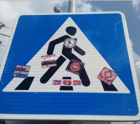 Хотите узнать больше? Такое фото было сделано мною на одном из знаков по центральной улице города Горки. На фото наклейки горецких футбольных болельщиков. С такими фразами
