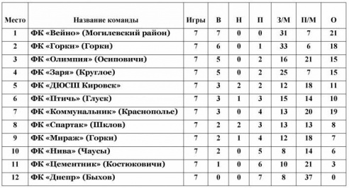 Хотите узнать больше? Горецкие футбольные команды остаются на втором и девятом месте областного чемпионата. Таблица Чемпионата Могилевской области по футболу после