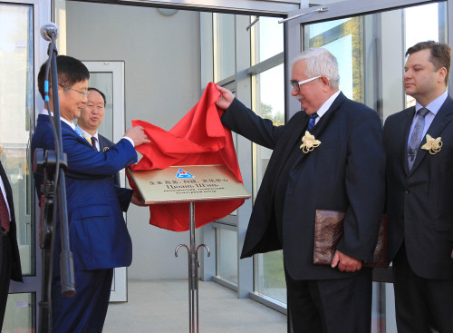 На снимке: открывают Центр Чрезвычайный и Полномочный Посол КНР в Республике Беларусь Цуй Цимин и проректор Белорусского Национального технического университета по учебной работе и международному сотрудничеству Александр Цыганов.Фото Геннадия Жинкова, БелТА.