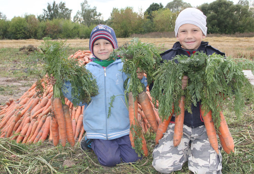 На своем приусадебном участке, который занимает всего две-три сотки староста деревни Смольки А. Н. Абраменко вырастил богатый урожай овощей для своей семьи. Все культуры порадовали хозяев, но особенно удалась морковь. Ее заготовили с избытком. Сочные корнеплоды поражают своей величиной! Сыновья Александра Николаевича Николай и Тимофей с удовольствием демонстрируют витаминную продукцию (на снимке).
