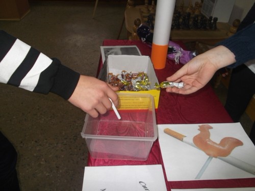 Активисты БРСМ учащиеся ГУО «Средняя школа №1 г.Костюковичи» раздавали курящим прохожим конфеты в замен на сигарету. Жители нашего района активно поддержали данную акцию. Все собранные сигареты были уничтожены.