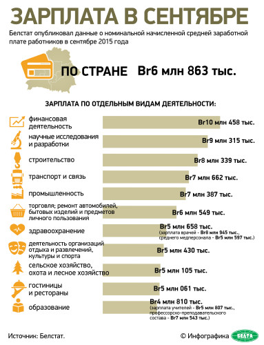 Хотите узнать больше? Белстат опубликовал данные о номинальной начисленной средней заработной плате работников в сентябре 2015 года по отдельным видам экономической