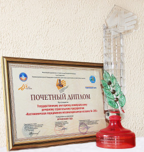 Почетный диплом победителя в номинации «Организация года» и кубок завоевали наши строители – ГУКДСП «Костюковичская ПМК №260»