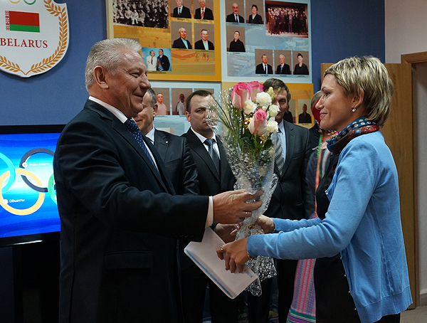 Руководитель области тепло поздравил всех участников мероприятия со столь знаменательным событием, вручил в качестве подарка от облисполкома для зала олимпийской и спортивной славы Могилевщины интерактивный экран, а также грамоты и ценные подарки лучшим спортсменам области и их тренерам по итогам 2013 года.