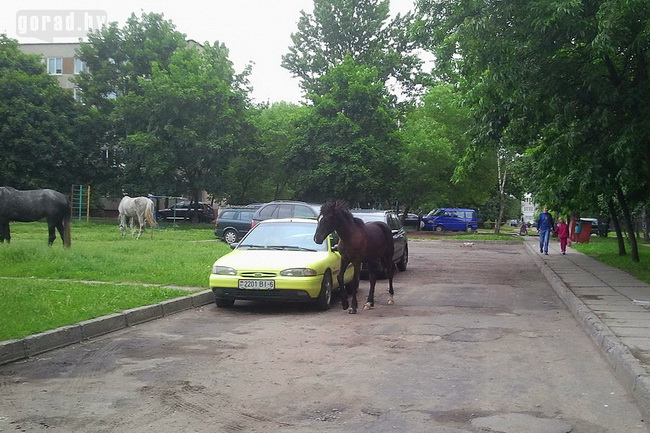 В районе Заднепровья пешеходы и водители зачастую наблюдают картину: целый табун лошадей спокойно прогуливается по проезжей части или по двору.