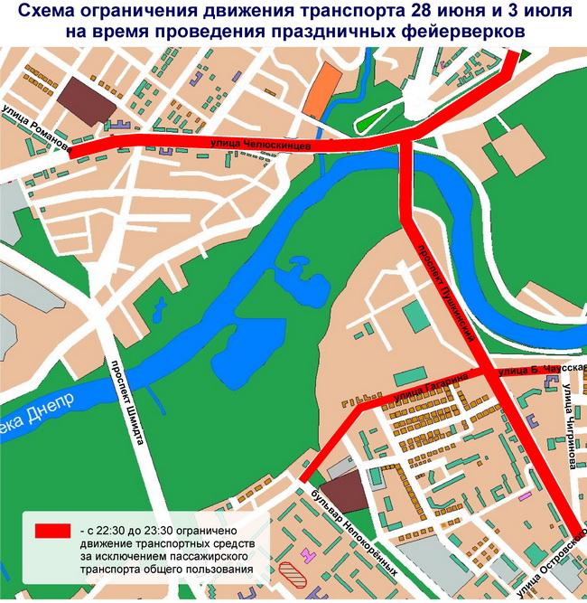 Движение 28 июня и 3 июля перекроют для транспорта (кроме общественного транспорта) с 22:30 и до 23:30 на участках дорог: