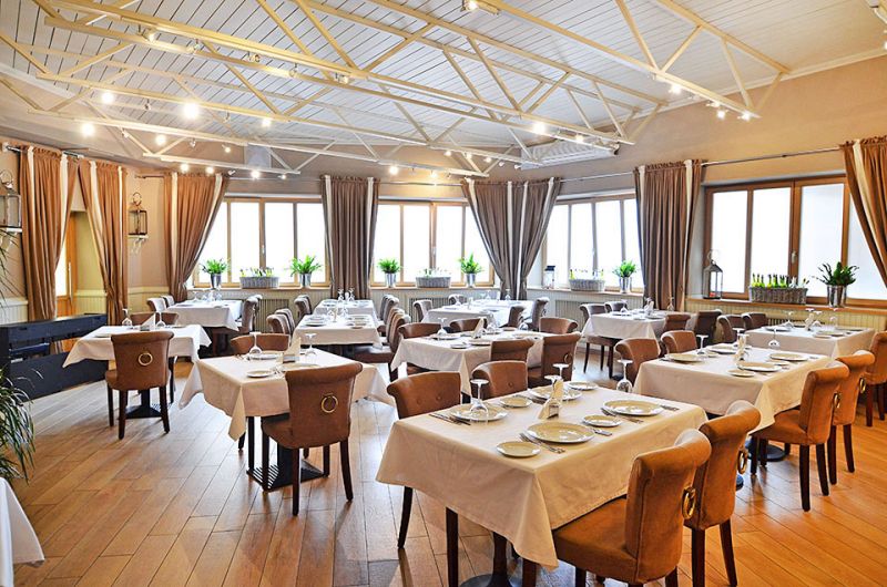 Ресторан Bellagio: «Романтическая и уютная обстановка ресторана «Белладжио», исполненная в теплых тонах кофе с молоком, не просто располагает к приятной еде, но и доставляет эстетическое удовольствие. Этот цвет превосходно рифмуется с идеально белыми скатертями и до блеска начищенными столовыми приборами. Игра полутонов и текстур гардин, стульев, пола создает картину изысканности, уюта и чистоты. Но, это все приятные дополнения, главными же чертами ресторана «Белладжио» являются безупречная кухня и отличное обслуживание».