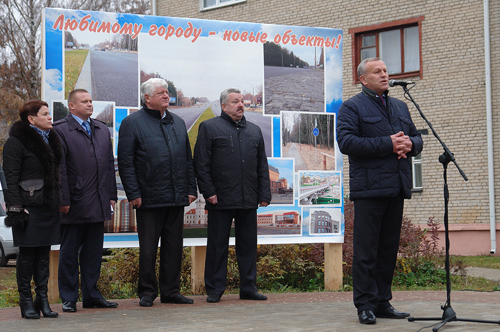 «Этот объект - образец работ по реконструкции магистральных улиц. Вместе с оборудованием дорожного полотна, озеленением прилегающей территории, проектом предусмотрено появление пешеходных дорожек. К тому же в городе начата реализация программы по устройству дорожек для велосипедистов - на данном участке уже оборудовано 2 км из 5 км запланированных. В будущем для них будут предусмотрены парковки и зоны отдыха, - рассказал Владимир Цумарев. - Всего в первой очереди реконструкции благоустроено 7 га территории, а обошелся проект в Br54 млрд.»