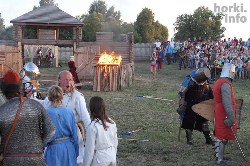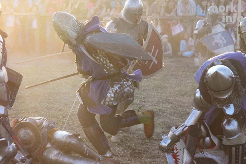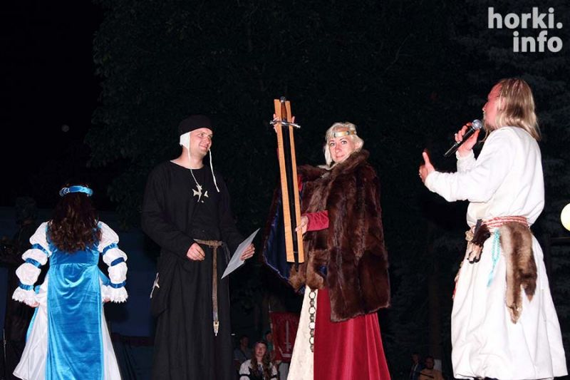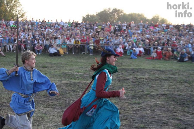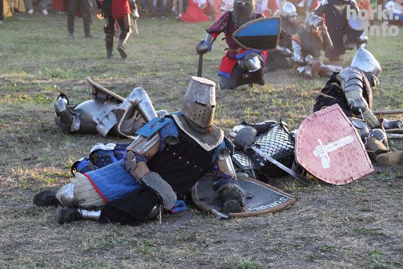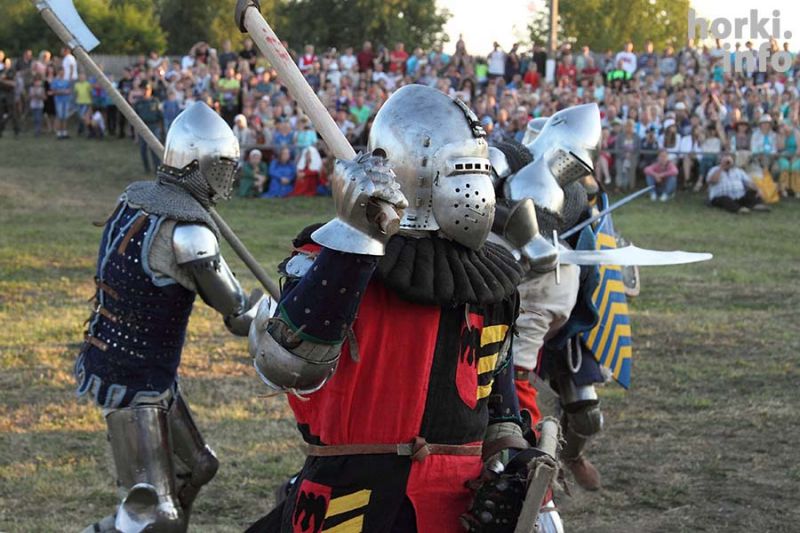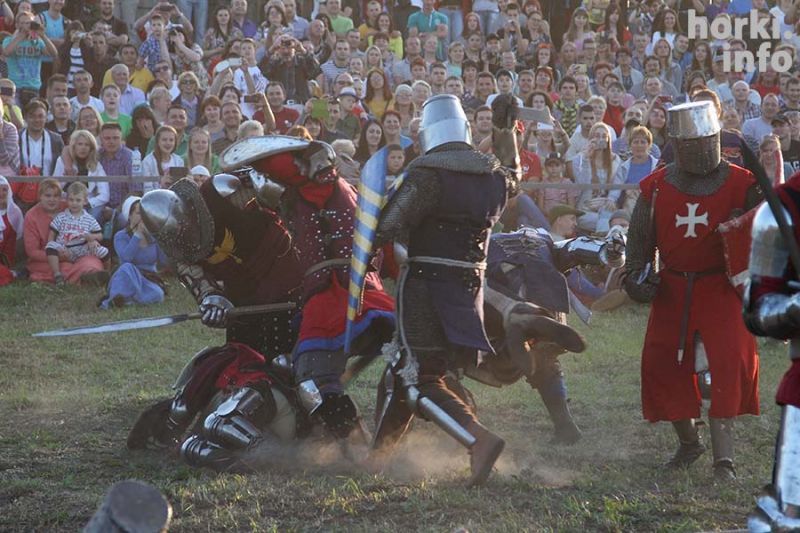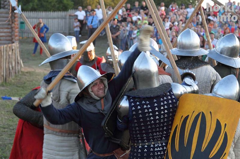 Ярким и зрелищным было выступление конно-исторического клуба «Золотая Шпора». Рыцари показали мастерство владения мечом и копьем в конных соревнованиях: рубка «сарацинских голов», рукопашный бой на лошадях, поднятие платка копьем в честь дамы своего сердца.