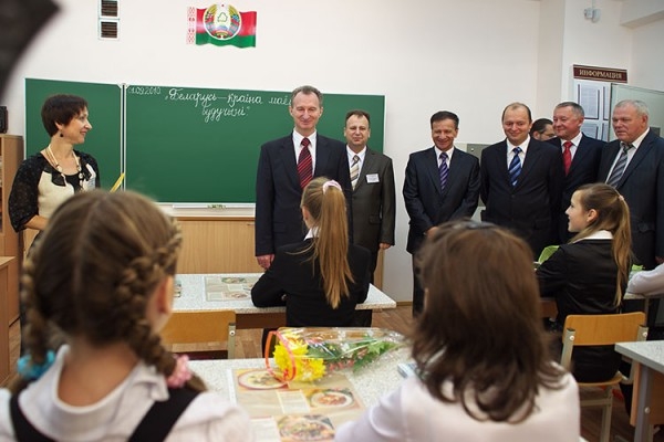 Александр Косинец на открытии первой школы в Билево. Фото Сергея Серебро
