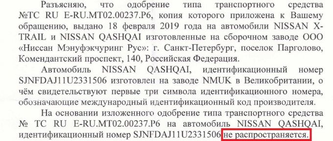 Направили в адрес УГАИ заявление о постановке легкового автомобиля Nissan Qashqai на учет и приложили копию Одобрения типа транспортного средства, полученную от дилера. Ответ ошарашил: это одобрение типа транспортного средства на наш легковой автомобиль Nissan Qashqai не распространяется. При этом нет ни одной ссылки на какой-либо нормативный правовой акт.