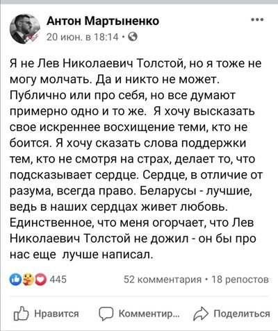 В июне он дважды отреагировал постом в соцсетях на резонансные события. Первую публикацию Антон сделал 20 июня, после задержания Виктора Бабарико.
