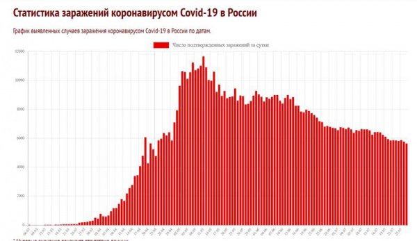 В настоящее время там выявлено 818120 заразившихся коронавирусом, из которых 201437 человек все еще болеют. За сутки в России сейчас выявляется немногим более 5,5 тысяч новых заражений.