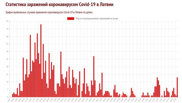 Из соседних стран самой безопасной смело можно назвать Латвию, где зафиксировано всего 1219 заражений. При этом сейчас болеют только 143 человека. Правда, и тут коронавирус в последнее время начал проявлять новую активность. В воскресенье, 26 июля 2020 года, в Латвии зафиксирован новый пик – 13 заражений за сутки. И это при том, что еще месяц назад были 5 дней кряду с нулевым значением.