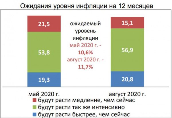 Согласно опросу, если в мае ожидаемый уровень инфляции составлял 10,6%, то в августе он вырос до 11,7%. Это довольно значительный рост за такой промежуток времени, особенно, если учесть, за счет чего он произошел.